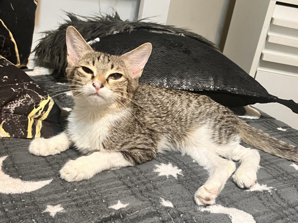 این اقا پسر کوچولو اولا که اومد خونمون ما دنبال سرپرست بودیم براش پیدا نشد:))تا یکماه پیش که درگیر fip شد و روزای اول کلا حس تو پاهاشو از دست داد.یک ماهه داره درمان میشه روزای اول با تزریق امپول الان با قرص،کامل بینایی و حس پاهاش برگشته ،به یک سرپرست دلسوز و با مسئولیت نیاز داره :))هزینع درمانش تامین میشه ،فقط سرپرست مطمعن میخایم کع دور از استرس نگه داره این بچرو.چون استرس باعث میشه بیماریش برگرده.