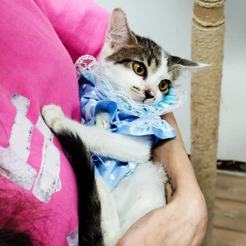 برفی دختر 3ماهه که وقتی پیداش کردیم 600گرم بود پر از عفونت و انگل الان خدارو شکر حالش خوب خوبه بچمون چند بار برای واگذاری آگهی شد ولی متاسفانه به خاطر گوش هاش همه مسخره کردن این بچه رو خیلی ترسو و مهربونه و انگاری از آدما آسیب دیده ولی دنبال یه خانواده پر از عشق که بتونه تمام آسیب هاشو فراموش کنه