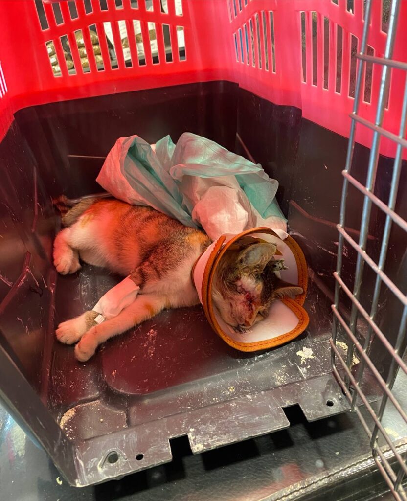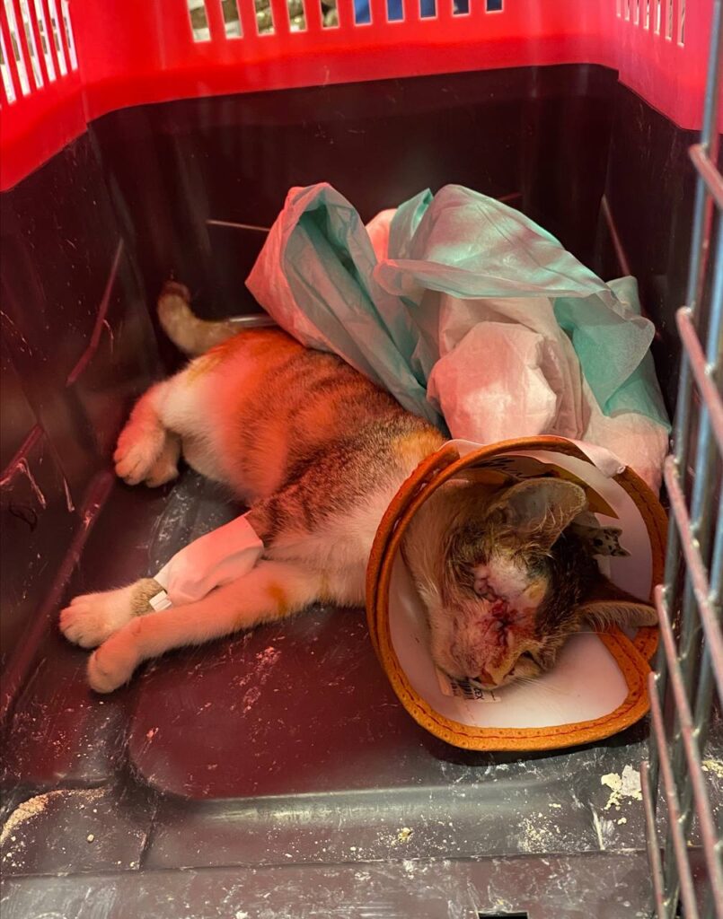 یه بچه گربه خیابانی ماده که چشمش عفونت کرده بود، در بیمارستان جراحی کردیم. چشم راستش تخلیه شده و چشم چپش در حال بهبودیه. چند روز بعد از نگه داری های بعد از عمل، نیاز فوری به کسی داره که شرایط به سرپرستی گرفتنش رو داشته باشه.