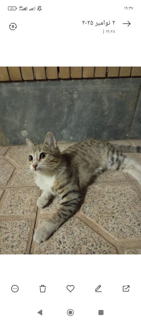 بچه گربه 6 ماهه 2 روزه گم شده اگه پیداش کردین لطفاً بهم اطلاع بدین و مژدگانی دریافت کنید