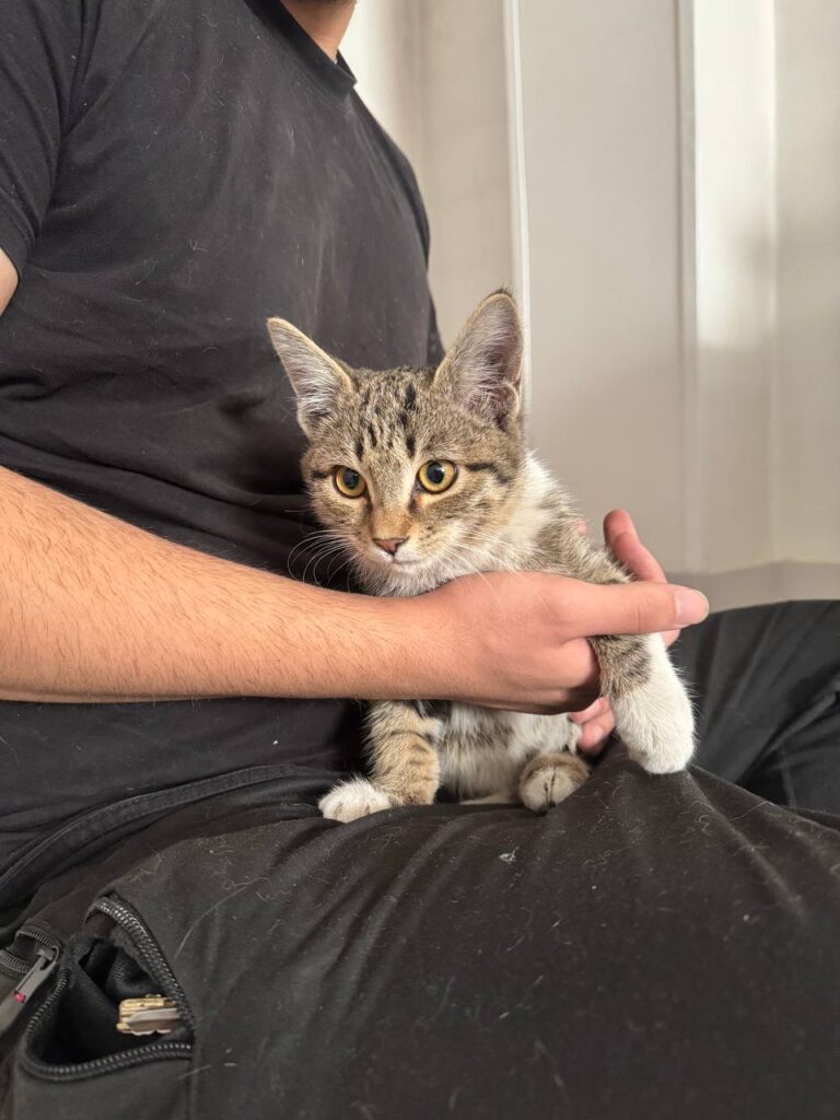 بچه گربه ۳ ماهه هستش مادر نداره خیلی مهربونو دستی هستش گربه های دیگه خیلی میزننش غذا نمیتونه پیدا کنه از دفعه اول هم بقل ادم میاد خیلی هم با ادما سریع دوست میشه