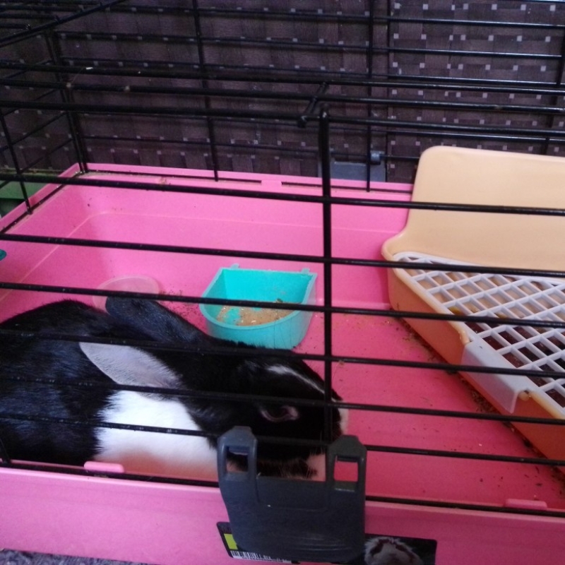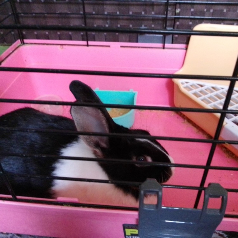 خرگوش نر با قفس حمل و توالت و ظرف غذا بسیار بانمک و مهربون، آموزش دیده و فقط رو توالتش دستشویی میکنه. هر کس حیاط تمیز داره که مطمئنه گربه داخلش نمیاد تماس بگیره چون قفسش برای حمل و خوابیدنشه نباید دائم تو قفس باشه و باید تو حیاط و باغچه بازی کنه. شهرستان تماس نگیرد
