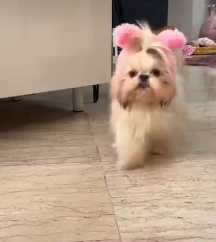 یک سگ شیتزو فلت سایز ریز زیبا و خالص زیر دو‌کیلو ماده