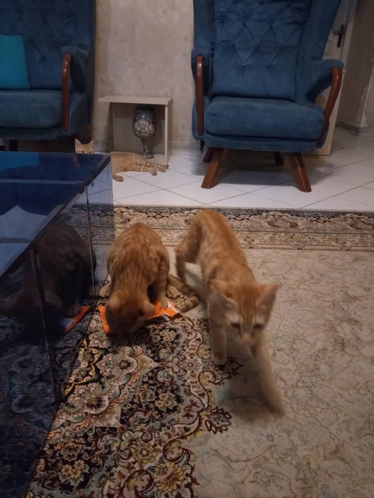 مادر این بچه ها کیس امدادی من بوده که متاسفانه وسط درمانش باردار هم شده. چون بابام به موی گربه حساسیت داره، مجبور شدم بذارمش پیش کسی و اونجا بچه ها رو به دنیا آورد (یه ماده و به نر). الان هم کسی که نگهشون می داره، دیگه حاضر به همکاری نیست و می خواد رهاشون کنه. مادر رو می تونم بیارم پیش خودم ولی بچه ها رو باید زودتر واگذار کنم. کوچه رو هم بلد نیستن. این چندمین باریه که دارم آگهی می دم ولی کسی کمک نکرده. لطفاً بهشون کمک کنین 🙏🙏