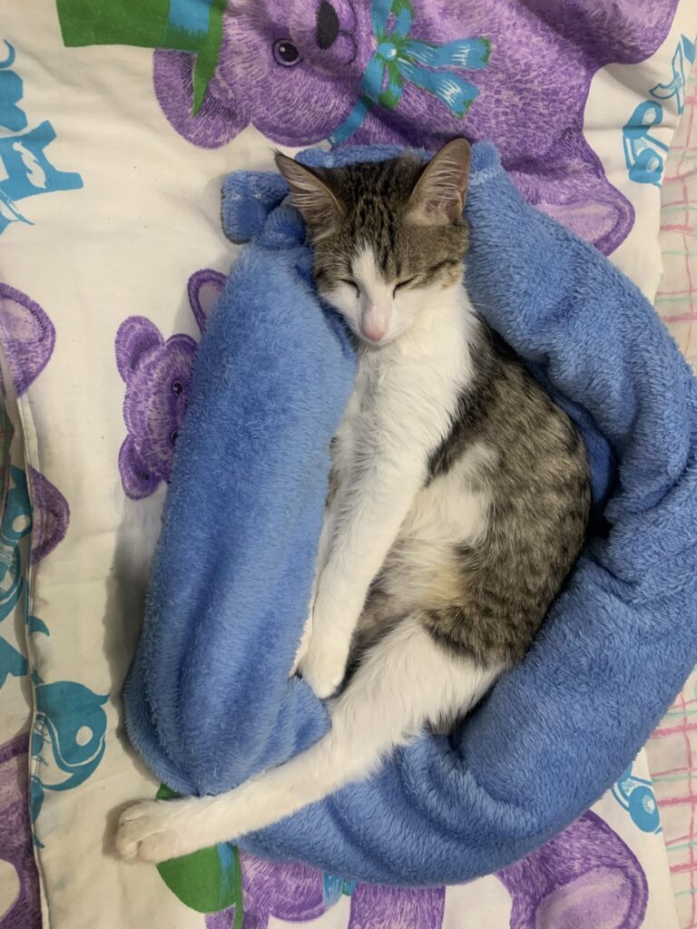 توی خیابون با حال بد پیداش کردیم که پاش از دوجا شکستگی داشت عفونت و کم خونی شدید داشت که هم عفونت و هم کم خونی کاملا برطرف شد و پاش عمل شد ولی به خاطر درد پاش هنوز کمی میلنگه