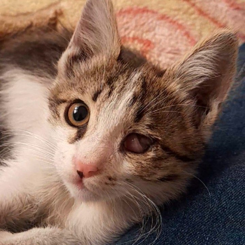 بچه گربه کم بینا از یک چشم بسیارمهربان وبغلی شبهابامن میخوابه وبا خرخرش ارامش میده همه کارهاشوخودش انجام میده.