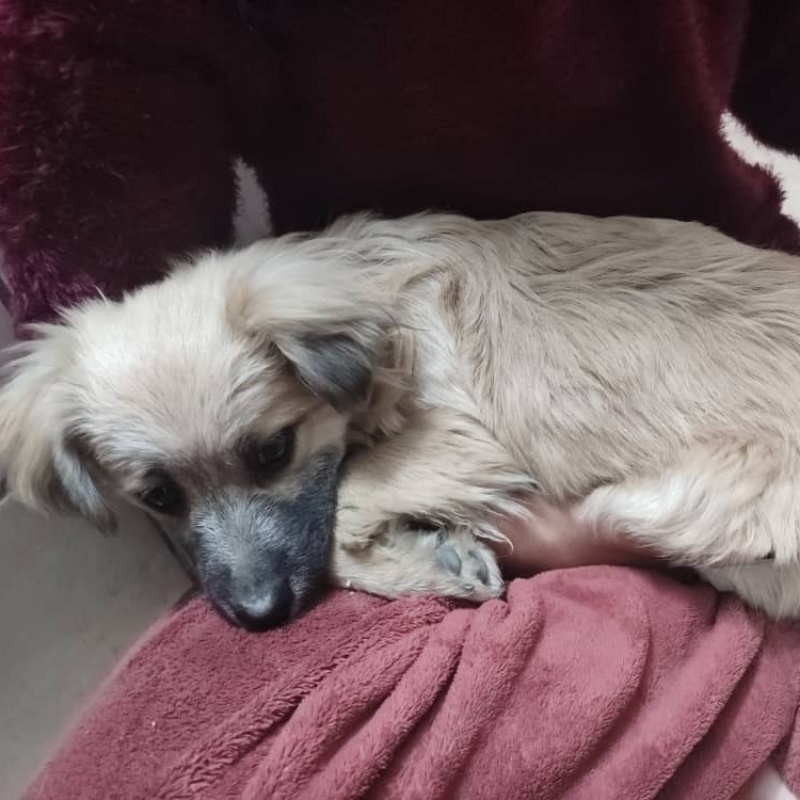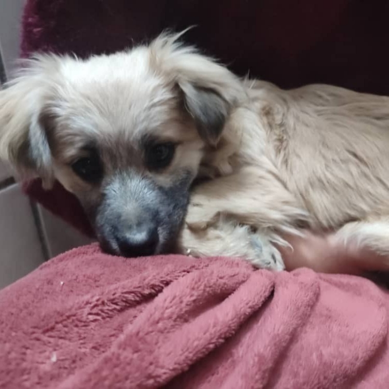 این توله سگ پیدا شده با دست آسیب دیده