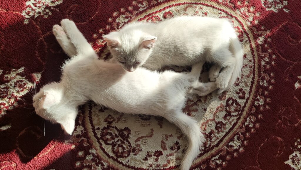 دو عدد گربه سفید چشم دو رنگ . بسیار زیبا . سن دوماه . یکی نر یکی ماده . فقط واگذاری به خانوادی ای که گربه داشته باشن یا تجربیه نگهداری از گربه داشته باشن . ترجیحا با هم واگذار میشن. رایگان هستن ولی با شرایط