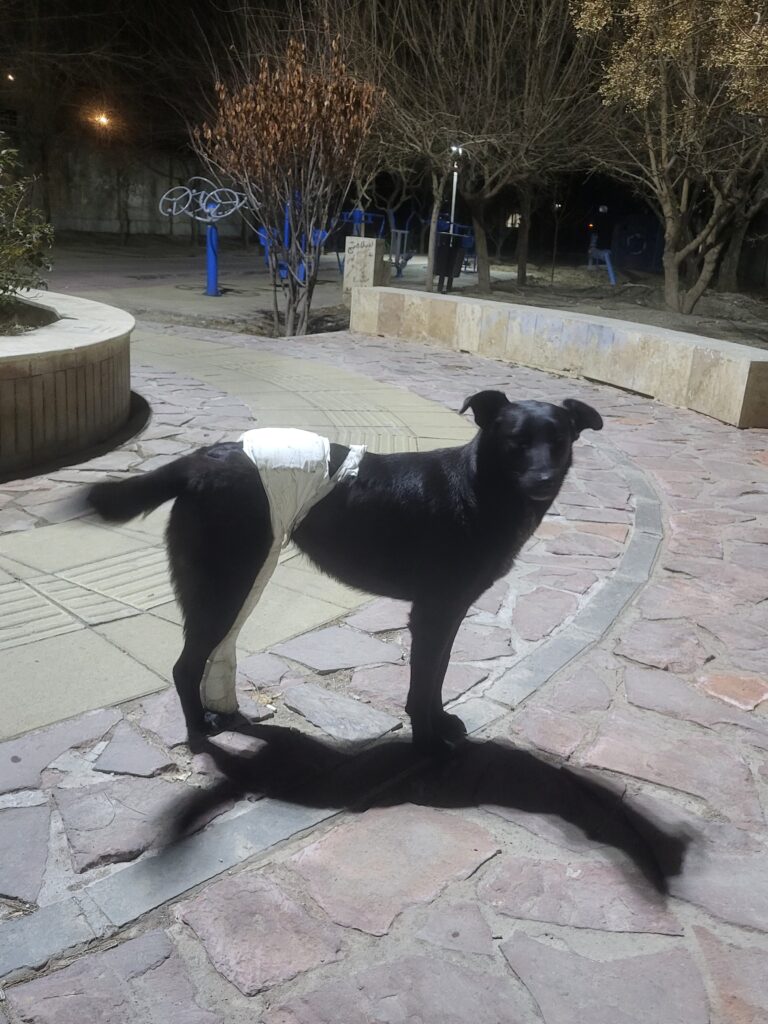 در تاریخ ۲۲ دی ماه سگ رو یا پای شکسته در مهرشهر دیدیم و برای جراحی و مراحل درمانش اقدام کردیم .