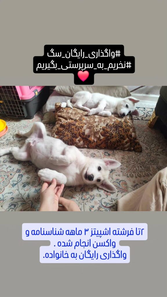 این دوتا فرشته یکیشون دختره یکیشون پسر ترجیحا باهم و با توجه به مفاد فرم واگذاری و تعهد‌های مشخص شده در تهران امکان واگذاری رایگان دارند.سرپرست قبلی مستاجر بوده و بدلیل مخالفت صاحب‌خانه امکان نگهداری بیشتر نداره
