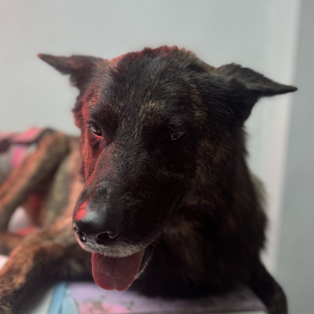 این بچرو که ۲سالش هست و نر از دست یک بد سرپرست که کتکش میزد گرفتیم که به گفته ی اهالی با بیل زده بودن به کمرش و دوتا پاهای پشتش فلج شده بود و خودشو رو زمین میکشید.اما با فیزیوتراپی الان کاملا رو پاهاش وایمیسته و راه میره اما کمی تلو تلو میخوره موقع دویدن .اما با وجود کمی ناتوانی کاملا حس و حال نگهبانی داره و بسیار مهربون و لوس هم هست