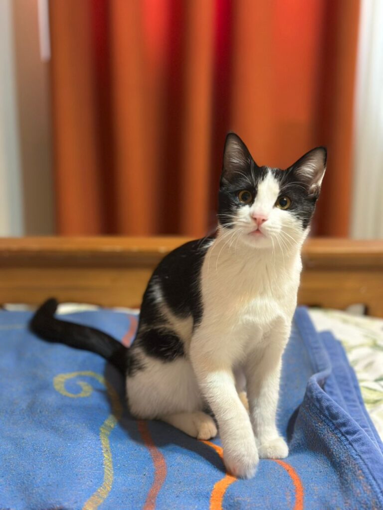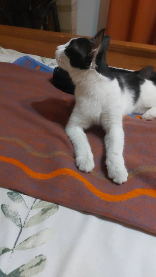 گربه تاکسیدو ماده 6 ماهه، صاحب اصلیش فوت شده، بعد از اون از دست حیوان آزار نجات پیدا کرده، کمبود کلسیم شدید داشته و کتک خورده بوده. یک ماهه دست منه، انگل تراپی شده، کیت ویروسی زده و بیماری ویروسی نداره، شناسنامه داره و اولین واکسنش رو خورده. بسیار بغلیه و دائم خرخر میکنه و فقط توی بغل میخوابه. چون گربه ی خودم به شدت استرسیه نمیتونم نگهش دارم. فقط به فرد مطمئن واگذار میشه و به صورت منظم باید از بچه عکس و فیلم ارسال بشه و وضعیت سلامتی بچه چک بشه. به شرط عقیم سازی واگذار میشه.