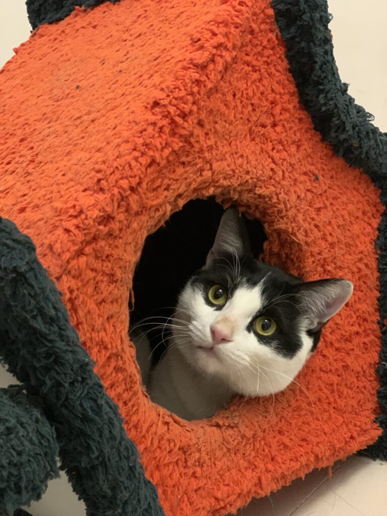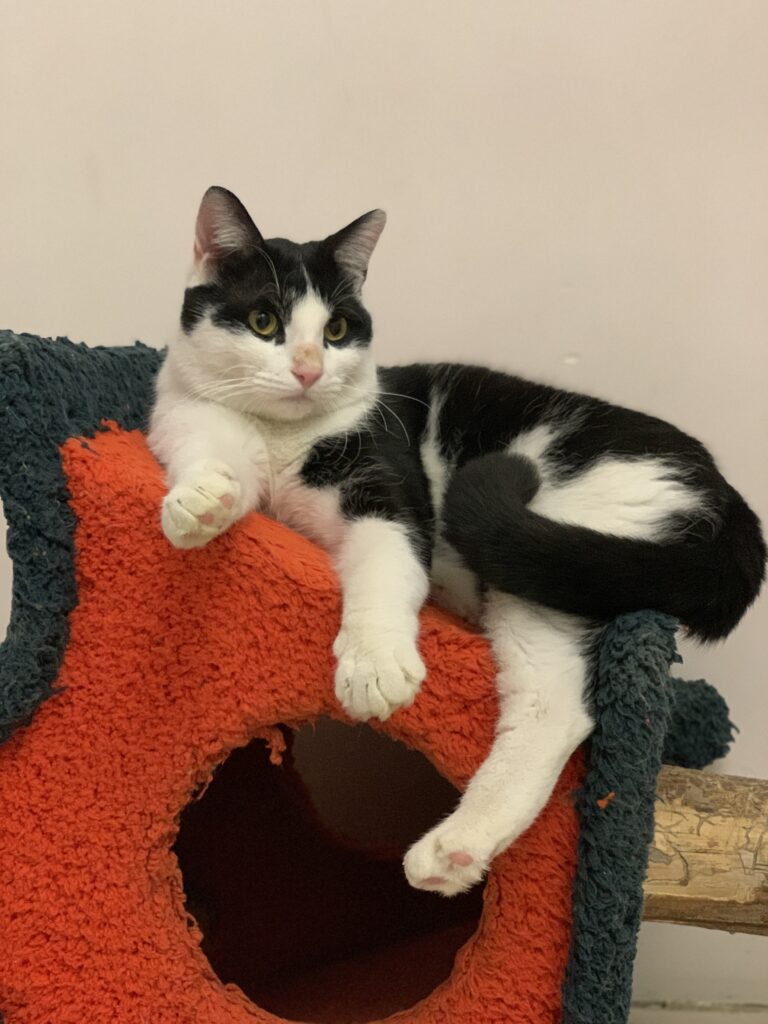 گربه نر تاکسیدو یک ساله که چون مریض بود رهاش کرده بودن و درمان و امداد شده و الان سلامت کامله