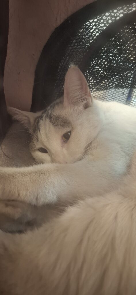 این گربه قبلا توسط یکی از همسایه ها نگهداری میشد و اون همسایه رفت و این بچه رو رها کرد .