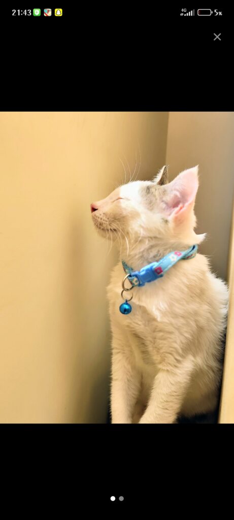 گربه نر چهار ماهه سفید دوز اول واکسن رو زدیم و انگل تراپی شده و با تمامی وسایلش واگذار میشه برای شرایط تماس بگیرید