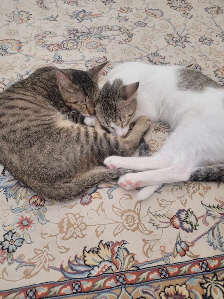 یک جفت گربه قشنگ داریم که خیلی بهم وابسته هستن ، نر اسمش نبات هست و ماده فلفلی ، من چون خودم ۱ گربه و چند خرگوش دارم متاسفانه دیگه توانایی رسیدگی به این ۲ گربه رو ندارم .