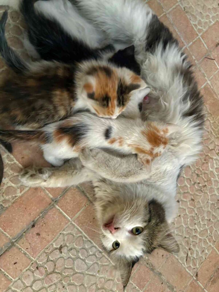 مامانشون خیلی آروم و خوشگل و خونگیه. چند ماه پیش یهویی اومد تو حیاطمون، انقدر مهربون و اهلی بود که فهمیدیم احتمالاً صاحبش ولش کرده. ما هم ازش مراقبت کردیم، ولی الان که بچهدار شده دیگه واقعاً شرایط نگهداریشون رو نداریم.