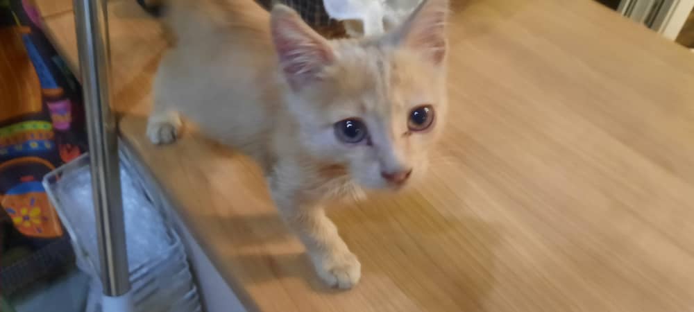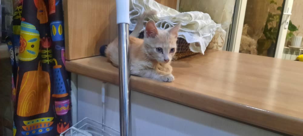 بچه گربه ای که مادر نداره و خیلی کوچیکه. رنگش کرم رنگه، دوماه و نیمه است، خودم شرایط نگهداری ندارم. دوتا گربه بزرگ دارم و یه سگ بزرگ