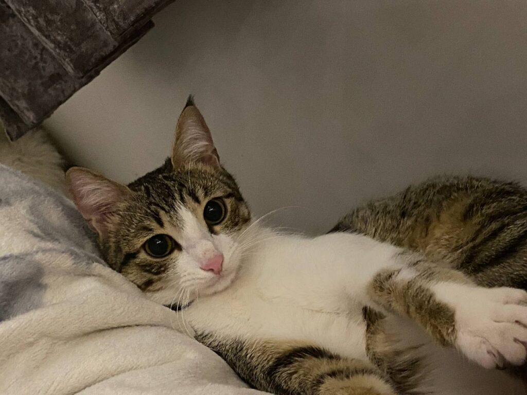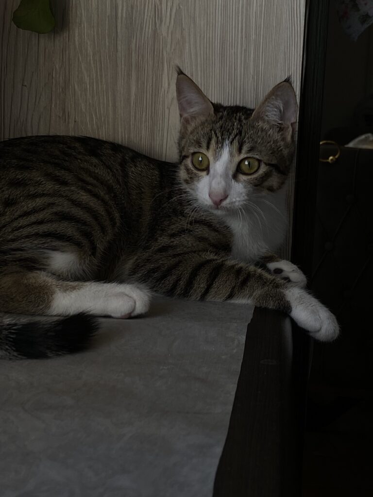 یه گربه ۱ سالست ک ریزه چاق نیست لاغرم نیست اسمش میمی صداش کنید برمیگرده فقط خیلی ترسوعه نمیتونه از خودش دفاع کنه