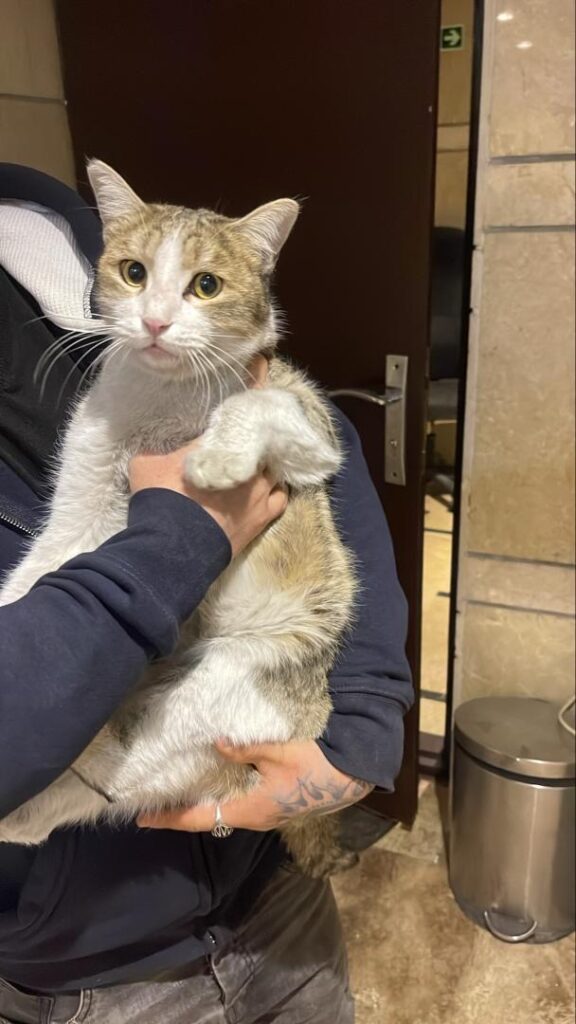 گربه مهربان و به نظرم خانگی چون خیلی خیلی مهربانه و داره بی قراری میکنه که ممکنه فرار کرده باشه یا رها شده باشه