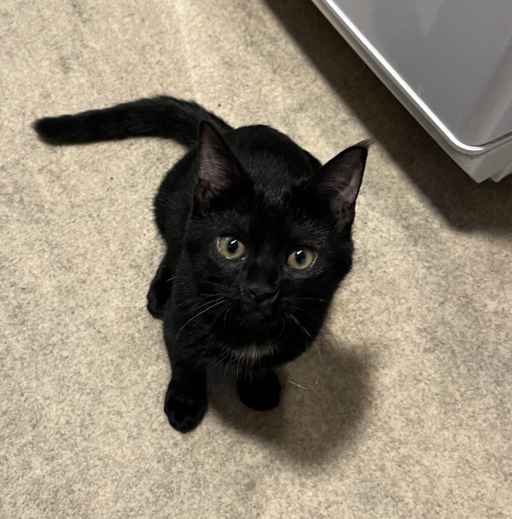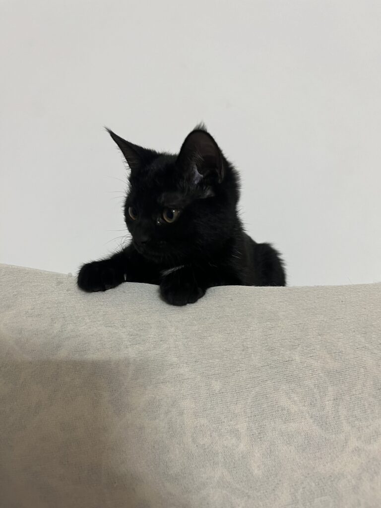 گربه سیاه,سالم،مهربون،۴ ماهه،از خرافات نجات پیدا کرده،چشماش مشکل داشت که درمانش کردیم،دنبال یه خانواده متعهد و مهربون،یه سری وسایل اولیه داره،هزینه عقیم سازی با خودم هستش