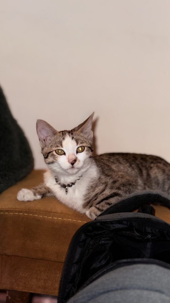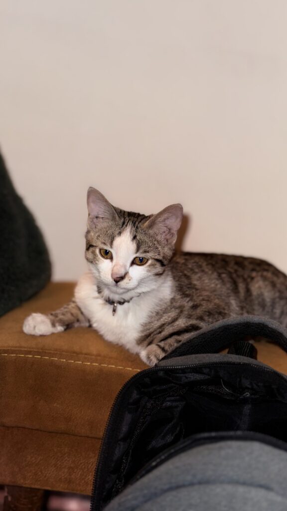 گربه ۳ ماهه ماده واکسیناسیون شده شیطون ، دمش از وسط قطع شده بود توی خونه از اول نگهداری شده خیلی شیطون و مهربونه