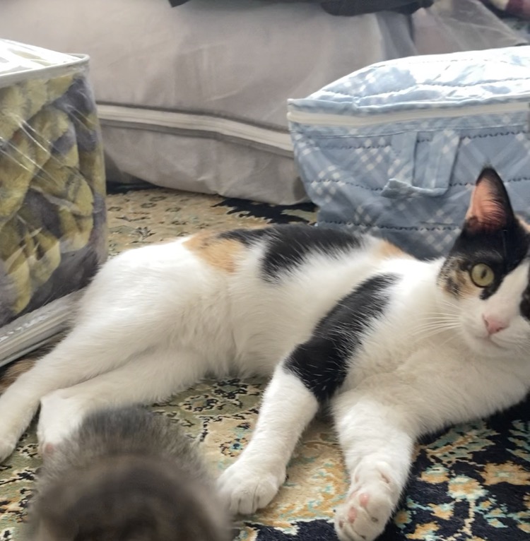 اسمش پشمکه ۲سالشه رنگش نارنجی مشکی وسفیده کف یکی از پاهاش دوتا خال مشکی به هم چسبیده داره رنگ چشماش بین سبز وزرده