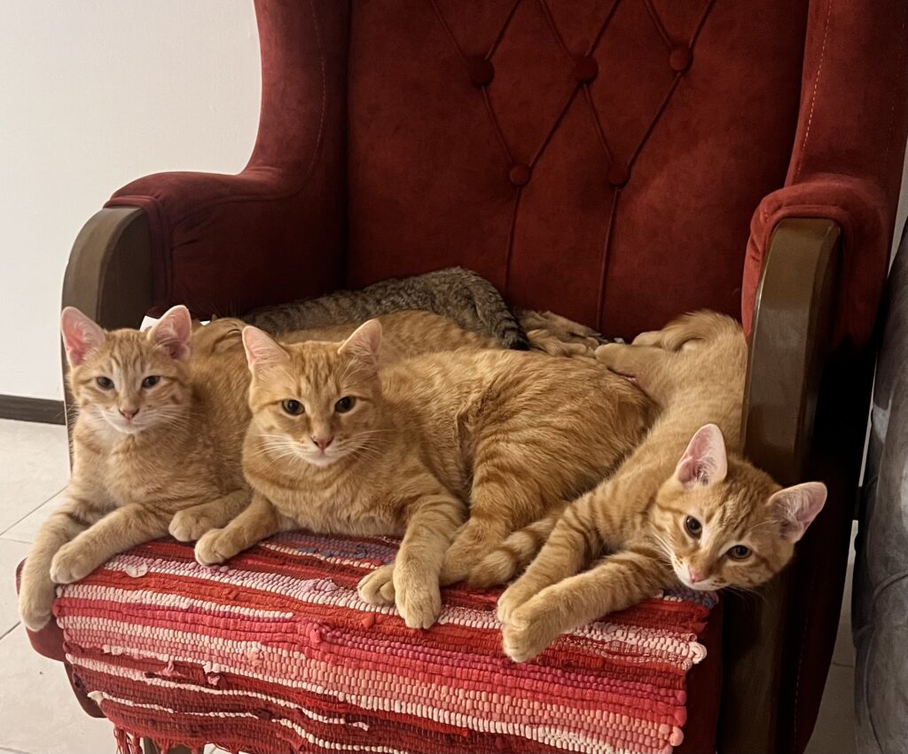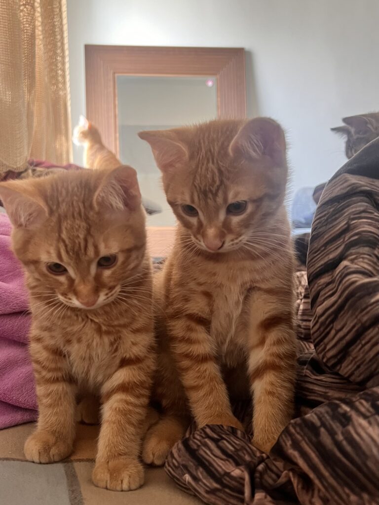 یکی از گربه هام حامله شد و الان چهار تا بچه گربه سه ماهه که یکیشون خاکستری که دختره !! و سه تا پسر نارنجی دارم . که شرایط نگهداریشون رو ندارم وگرنه واگذار نمیکردم . یه سرپرست خوب لطفا🩷